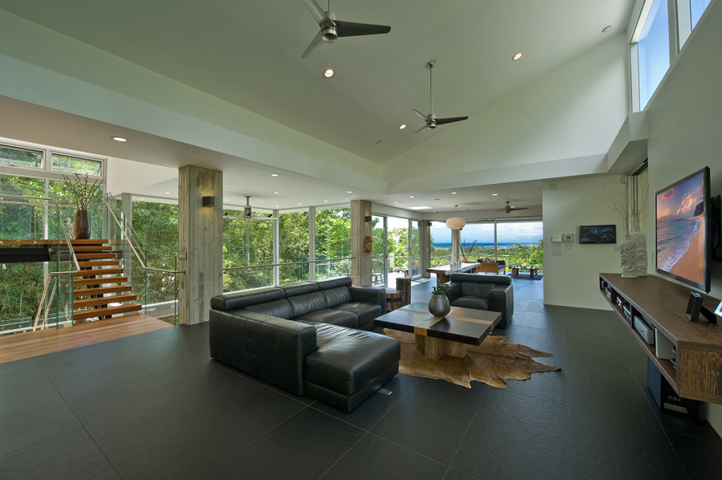 The thoughtful design both embraces and enhances the surroundings. The impressive 30-foot atrium entrance and dramatic windows showcase the peaceful surroundings of natural, lush tropical plantings, including a grove of 50-foot high Bamboo, 20-foot wide Hilo ferns and an array of beautiful trees.