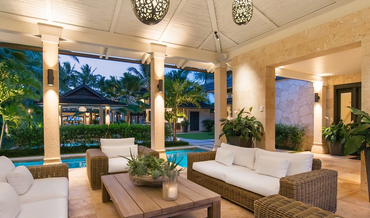 Listed by Anne Oliver, Coldwell Banker Pacific Properties, and designed by award-winning architect Peter Vincent, Hale Palekaiko or “House of Paradise,” offers a main residence of four bedrooms, four-and-one-half baths plus a guest residence with three bedrooms and three-and-one-half baths. The crown jewel of the estate is the outdoor pool pavilion complete with pool, spa, wet bar, HD TV, kitchen area with BBQ and pizza oven and poolside spa bathroom.