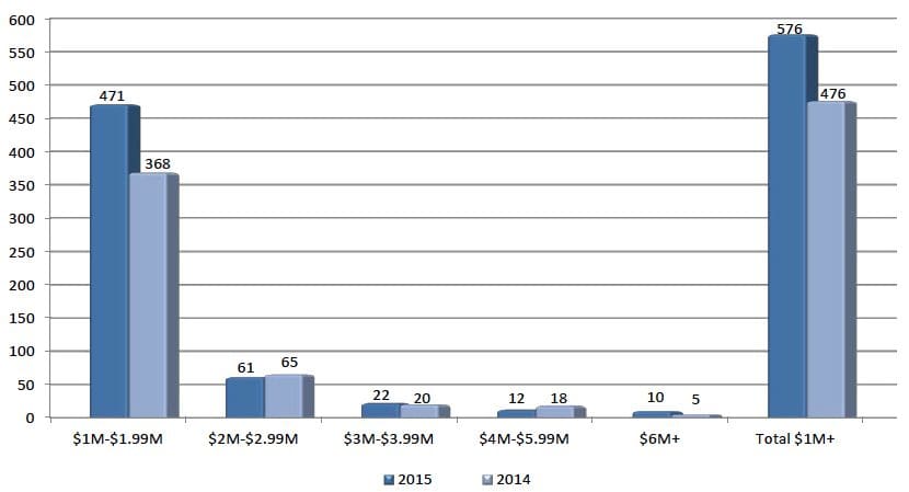 Oahu Single-Family Homes | $1M+ | Unit Sales by Price Range | September 2015 Year-To-Date