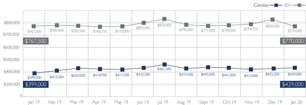 Median Sales Price of Single-Family Homes and Condos | January 2020