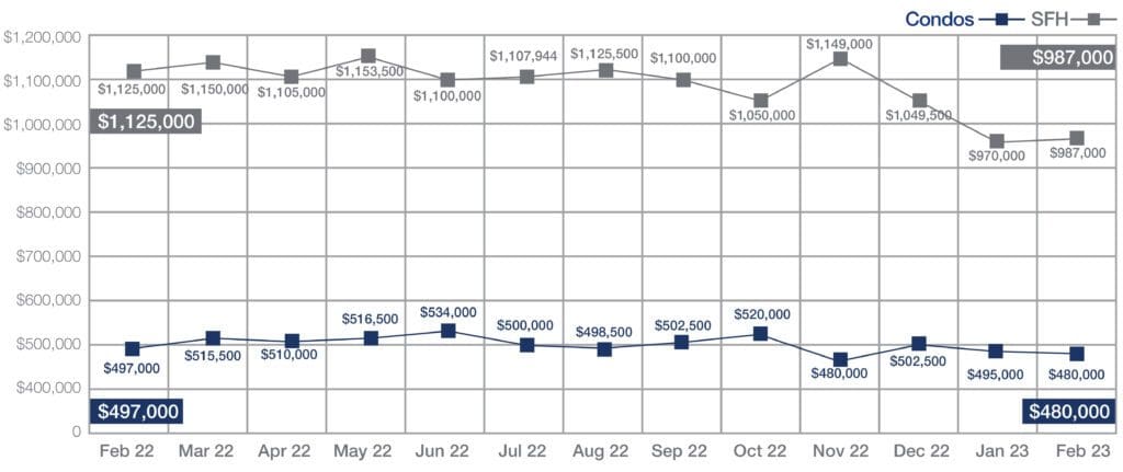Median Sales Price of Single-Family Homes and Condos | February 2023