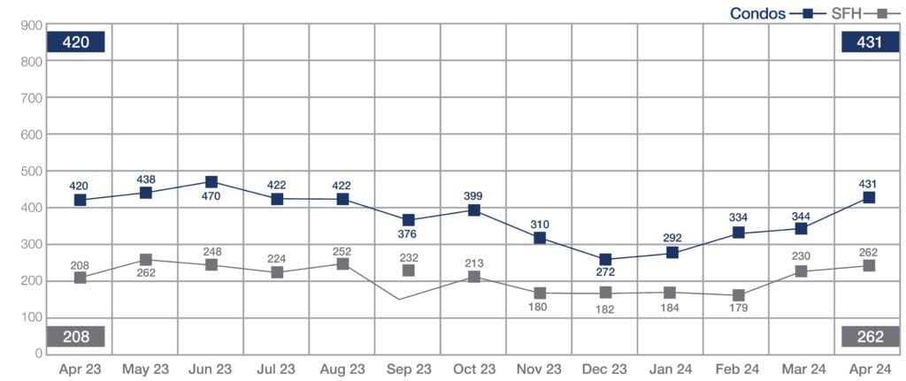 Condo MSP gained 5.6% — from $500,000 in April 2023 to $528,000 last month.