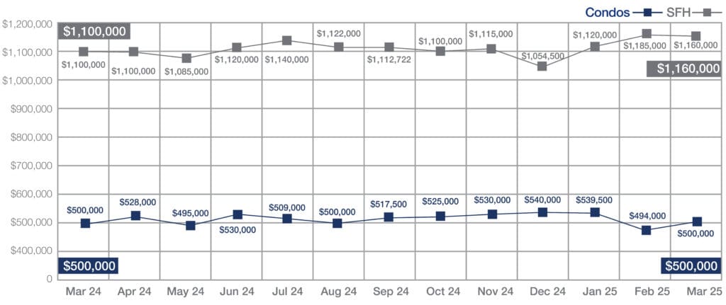 Median Sales Price of Single-Family Homes and Condos | March 2025